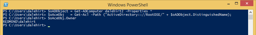 $oAceObj = Get-Acl -Path (“ActiveDirectory:://RootDSE/” + $oADObject.DistinguishedName);