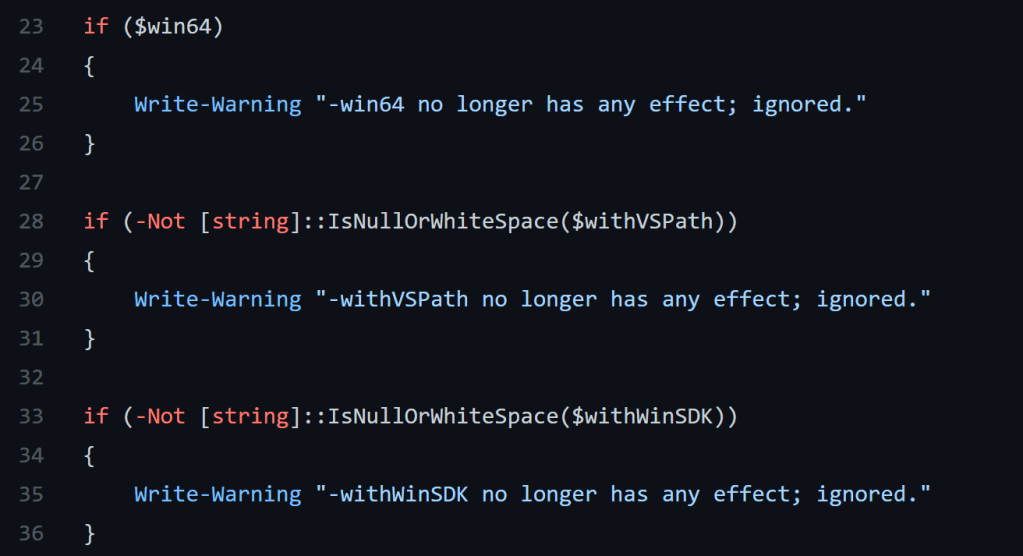 While I don’t do a lot of C++ development, I do like to look through our offerings when they GA. In this case, the first thing it asks you to do in the Getting Started page is run a batch script, which in turn calls a PowerShell script.